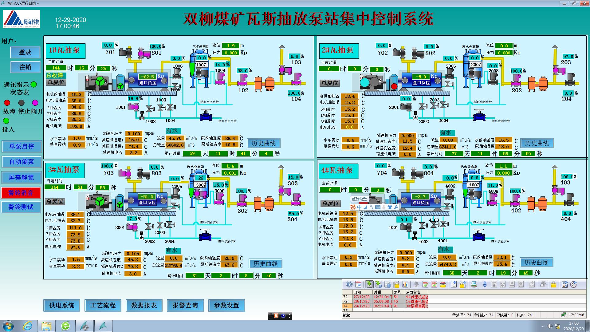 實現(xiàn)瓦抽站重點設(shè)備遠(yuǎn)程控制、一鍵倒泵、故障自動倒泵等功能